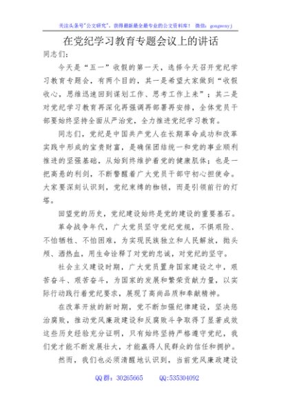 / 在党纪学习教育专题会议上的讲话1100字(再强调)