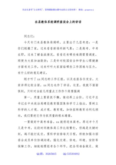 / 在县教体系统调研座谈会上的讲话