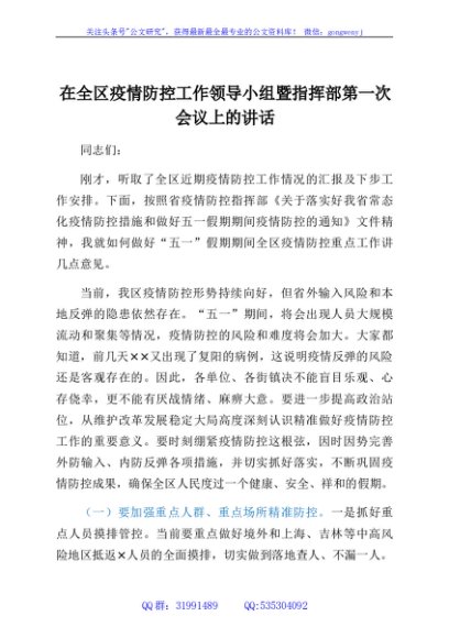 / 在全区疫情防控工作领导小组暨指挥部第一次会议上的讲话