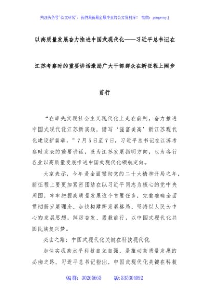 / 以高质量发展奋力推进中国式现代化——习近平总书记在江苏考察时的重要讲话激励广大干部群众在新征程上阔步前行