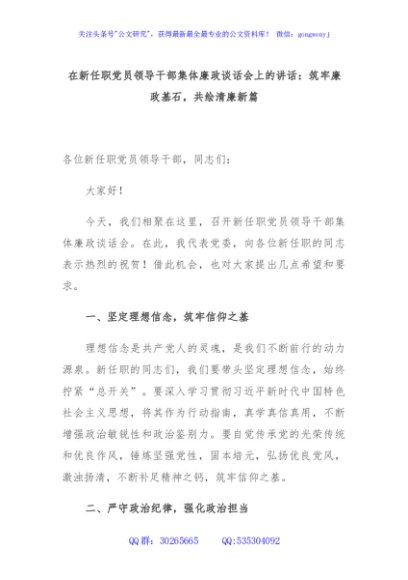 / 在新任职党员领导干部集体廉政谈话会上的讲话:筑牢廉政基石,共绘清廉新篇