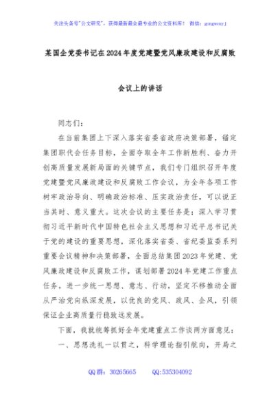 / 某国企党委书记在2024年度党建暨党风廉政建设和反腐败会议上的讲话