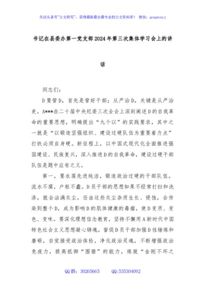 / 书记在县委办第一党支部2024年第三次集体学习会上的讲话