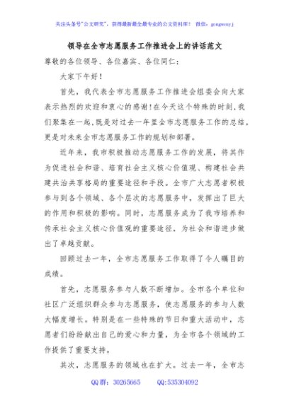 / 领导在全市志愿服务工作推进会上的讲话范文