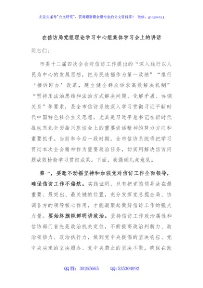 / 在信访局党组理论学习中心组集体学习会上的讲话