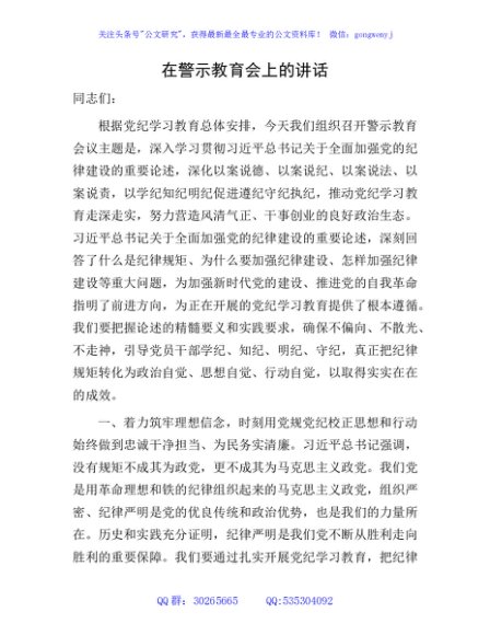 / 在党纪学习教育警示教育会上的讲话5600字