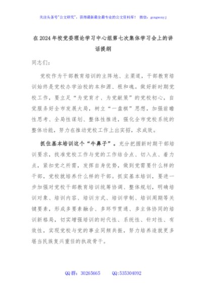 / 在2024年校党委理论学习中心组第七次集体学习会上的讲话提纲