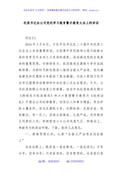 / 纪委书记在公司党纪学习教育警示教育大会上的讲话