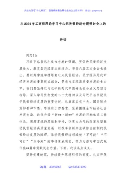/ 在2024年工商联理论学习中心组民营经济专题研讨会上的讲话