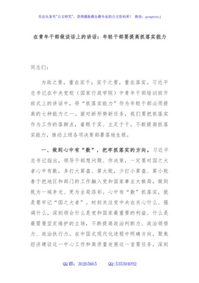/ 在青年干部做谈话上的讲话:年轻干部要提高抓落实能力