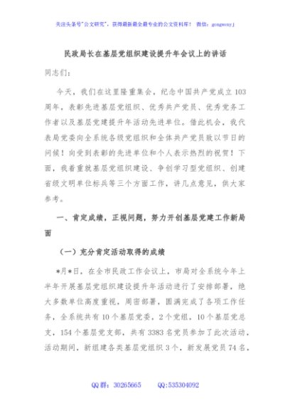 / 民政局长在基层党组织建设提升年会议上的讲话