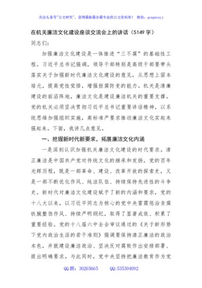 / 在机关廉洁文化建设座谈交流会上的讲话(5149字)