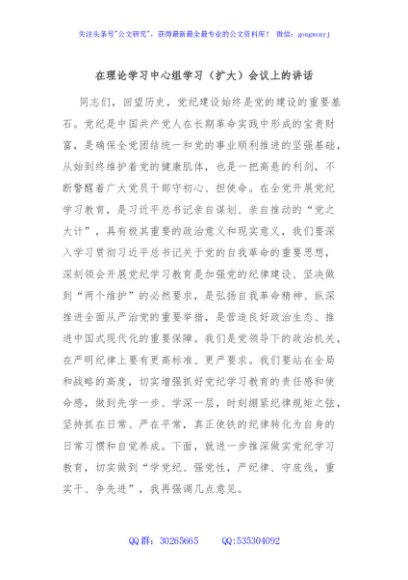 / 在理论学习中心组学习(扩大)会议上的讲话