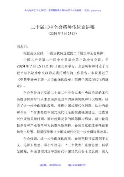 (传达讲话)二十届三中全会精神传达宣讲稿3800字
