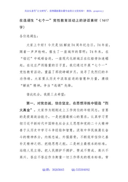 / 在选调生“七个一”党性教育活动上的讲话素材(1617字)