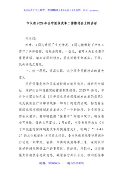 / 市长在2024年全市医保改革工作推进会上的讲话