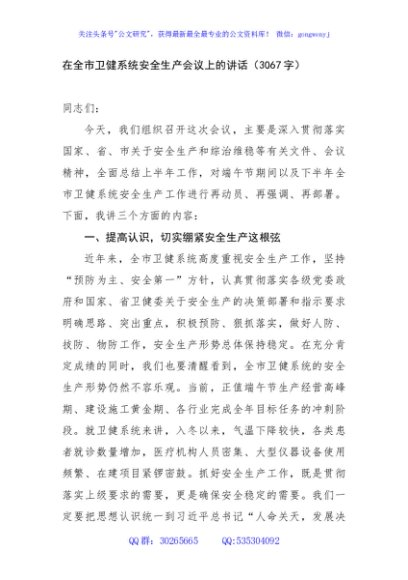 / 在全市卫健系统安全生产会议上的讲话(3067字)