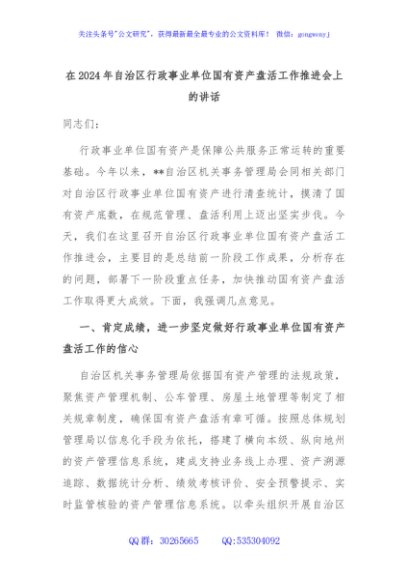 / 在2024年自治区行政事业单位国有资产盘活工作推进会上的讲话