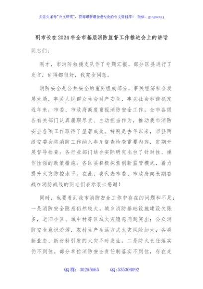 / 副市长在2024年全市基层消防监督工作推进会上的讲话