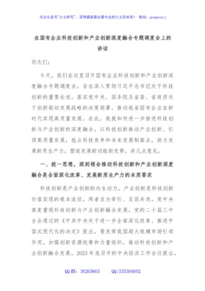 / 在国有企业科技创新和产业创新深度融合专题调度会上的讲话