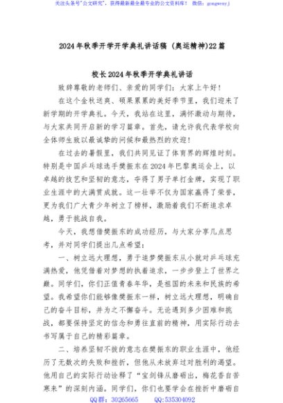 / (22篇)2024年秋季开学开学典礼讲话稿 (奥运精神)