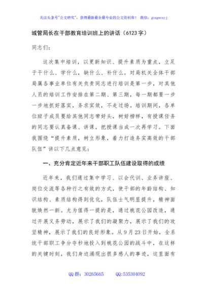 / 城管局长在干部教育培训班上的讲话(6123字)