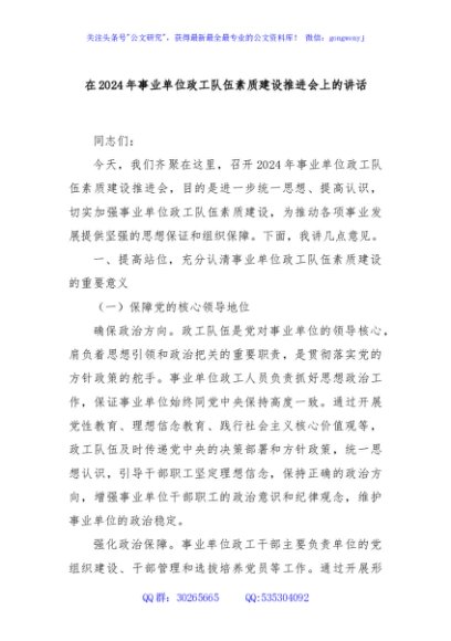 / 在2024年事业单位政工队伍素质建设推进会上的讲话