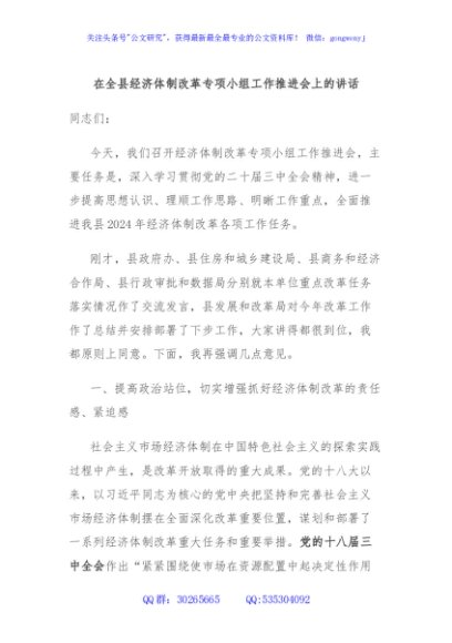 / 在全县经济体制改革专项小组工作推进会上的讲话