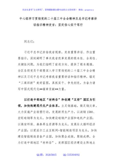 / 中心组学习贯彻党的二十届三中全会精神及总书记考察讲话指示精神发言:坚定信心实干笃行