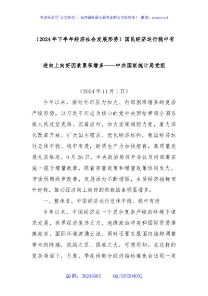 / (2024年下半年经济社会发展形势)国民经济运行稳中有进向上向好因素累积增多——中共国家统计局党组