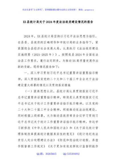 / XX县统计局关于2024年度法治政府建设情况的报告