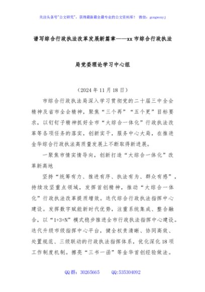 / 谱写综合行政执法改革发展新篇章——xx市综合行政执法局党委理论学习中心组