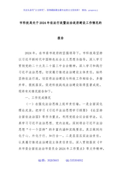 / 市科技局关于2024年依法行政暨法治政府建设工作情况的报告