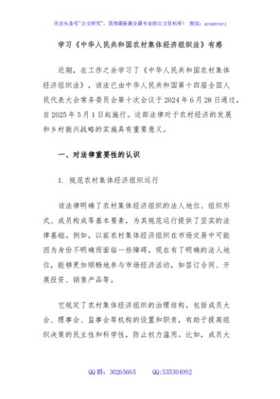 / 学习《中华人民共和国农村集体经济组织法》有感