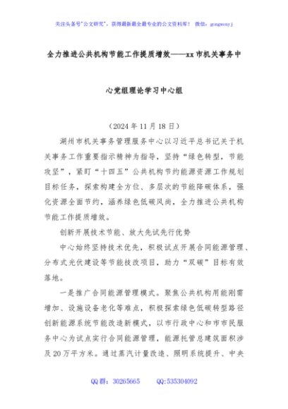 / 全力推进公共机构节能工作提质增效——xx市机关事务中心党组理论学习中心组