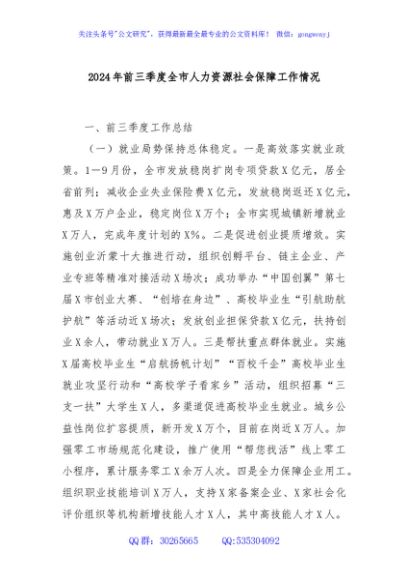 / 2024年前三季度全市人力资源社会保障工作情况