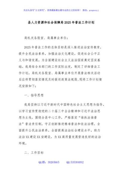 / 县人力资源和社会保障局2025年普法工作计划