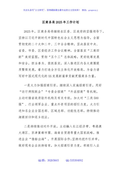 / 区商务局2025年工作计划