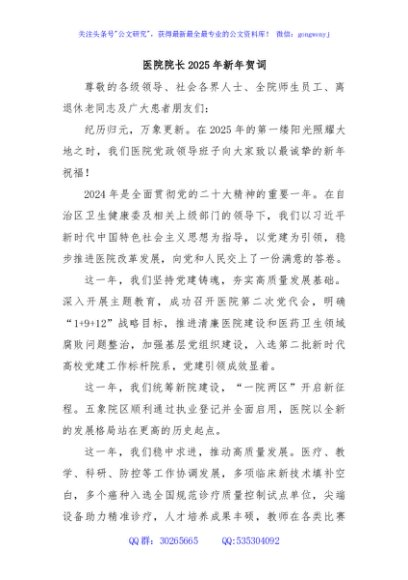 / 医院院长2025年新年贺词