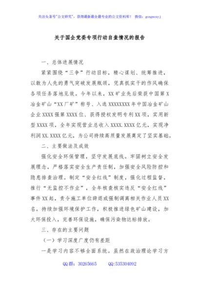 / 关于国企党委专项行动自查情况的报告