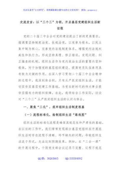 交流发言:以“三个三”为钥,开启基层党建组织生活新征程