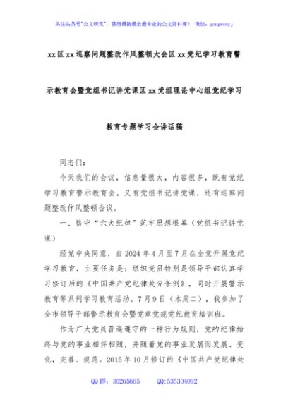 xx区xx巡察问题整改作风整顿大会区xx党纪学习教育警示教育会暨党组书记讲党课区xx党组理论中心组党纪学习教育专题学习会讲话稿