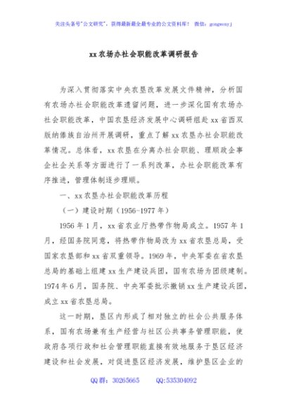 / xx农场办社会职能改革调研报告