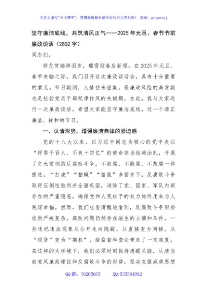 / 2025年元旦、春节节前廉政谈话(2802字)