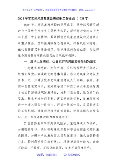/ 2025年落实党风廉政建设责任制工作要点(1938字)