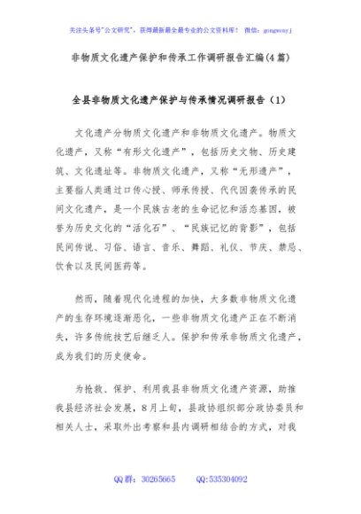 / (4篇)非物质文化遗产保护和传承工作调研报告汇编