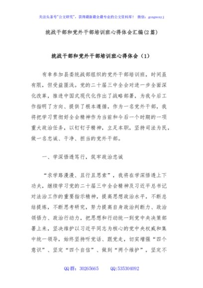 / (2篇)统战干部和党外干部培训班心得体会汇编