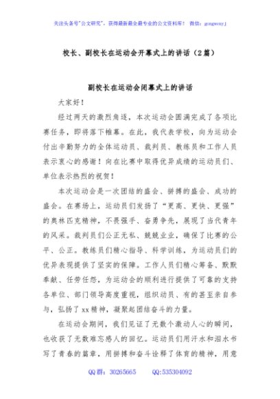 / (2篇)校长、副校长在运动会开幕式上的讲话