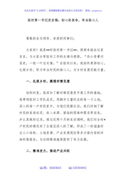 / 驻村第一书记发言稿:初心赴使命,争当贴心人