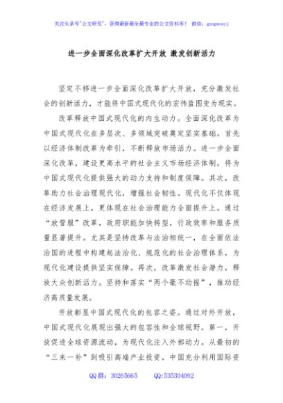 / 进一步全面深化改革扩大开放 激发创新活力